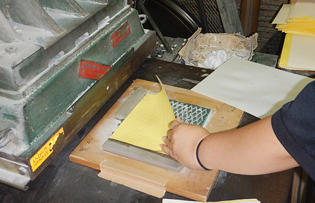 板紙、合板などの硬くて重みのある資材などを、定められた形状の刃物を使用して型抜・切断します。